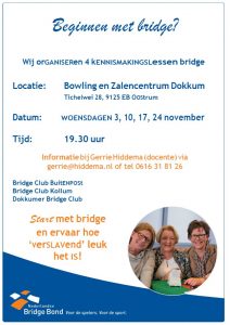 Na een bridgecafé voor geïnteresseerden, op 27 september, druppelden de aanmeldingen voor een...